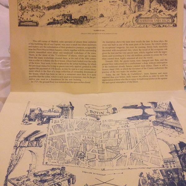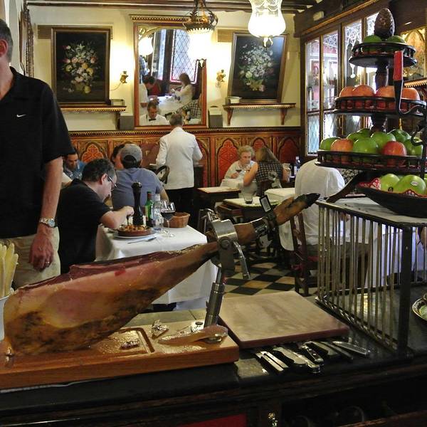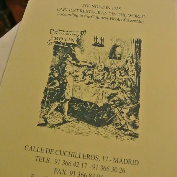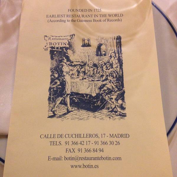 波丁之家被“吉尼斯纪录”认证为世界最古老餐厅,之所以被评为最古老,是指的从 1725 年开业至今从未中断过营业。 BOTIN 餐厅位于马约尔广场(Plaza Mayor)附近的一条巷子里,锃亮的木质门窗给人一种厚重的岁月感。橱窗里挂着吉尼斯世界纪录的招牌,上面写道:这是 1725 开业到现在一直营业的全世界最古老的餐厅,其中烤乳猪所用的老灶始于 18 世纪。热情的店员会引以为豪地带你去看烤乳猪的小厨房,二楼还有海明威常坐的位置。招牌烤乳猪(Cochinillo)皮脆肉嫩也没有膻味,一份量也足。火腿炒洋蓟心 (Alcachofa con Jamón)、卡斯提亚汤(Sopa Castellana)牛排和小羊排味道也很不错。