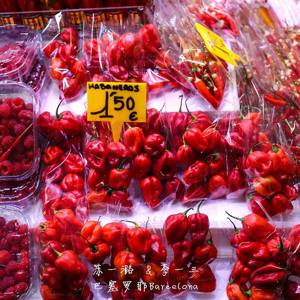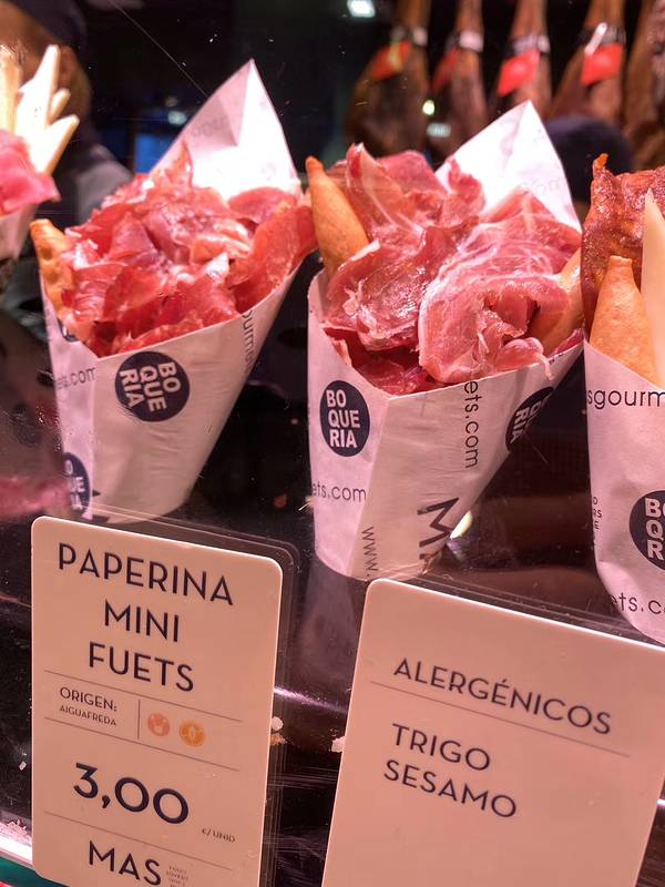 当然除了这些,这里也集中了巴塞罗那各种帅哥美女,可以大饱眼福食品摆放的十分整齐