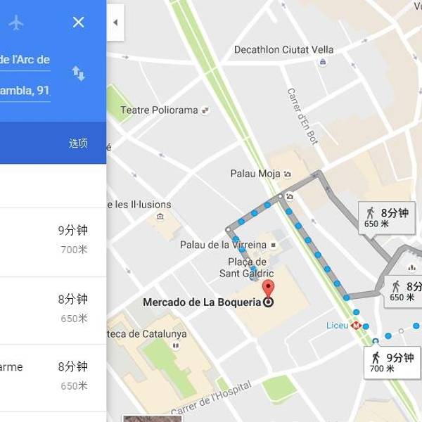 金骆驼 波盖利亚市场La Boqueria波盖利亚市场非常有名,每天慕名而来的游客也非常多,挤满了市...咖啡店到波盖利亚市场步行9分钟。
