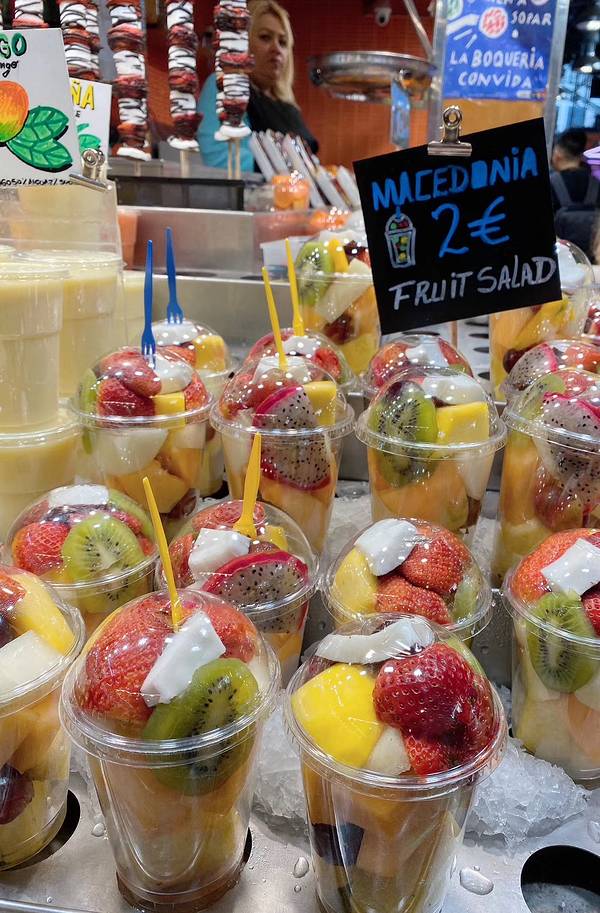 果汁和西班牙火腿最推荐巴塞罗那的网红市场,在兰布拉大道附近,逛的人特别多,里面五颜六色,琳琅满目,特别的热闹,人声鼎沸,摩肩接踵。果汁和西班牙火腿最推荐!!