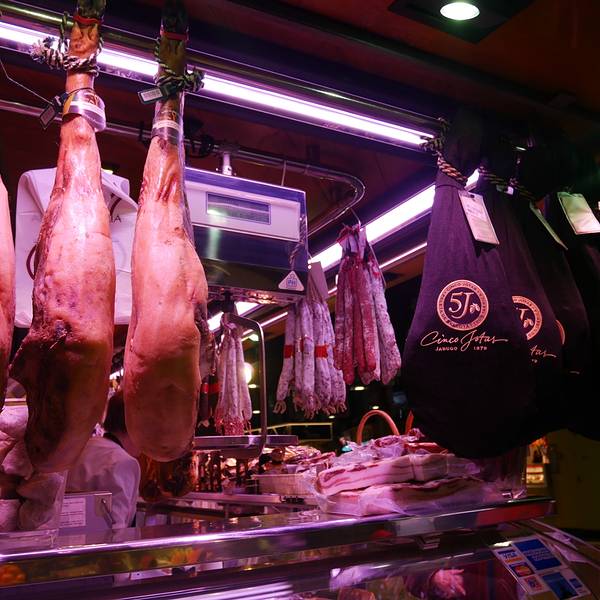 里既是当地美食家们的天堂,也挤满了挎着相机的观光客。各种当地出产的蔬菜水果,新鲜而饱满,泛着令人愉悦的光泽,拥有艳丽夺目的色彩。伊比利亚火腿、奶酪和海鲜也同样受到青睐。