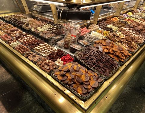 位于兰布拉大道上的波盖利亚市场是巴塞罗那较为古老的市场,也是深受巴塞罗那市民欢迎的地道食材采购地。 波盖利亚市场是名副其实的“吃货天堂”,摊位上的新鲜的水果、蔬菜、火腿、海鲜、糖果等井然有序地排放着,各种色彩穿插错落、如同毕加索手中的调色板一般,无不泛着令人愉悦的光泽。摊主们热情地招徕着过往行人,伊比利亚火腿、奶酪和海鲜等摊位总是深受人们青睐的地方。除了售卖食材外,部分摊点也提供食材加工服务,可以自行挑选食材然后由摊主现场为你烹饪美味佳肴。其中海鲜饭、当地小吃tapas颇受欢迎。