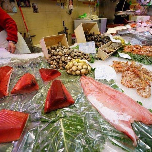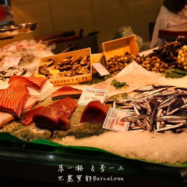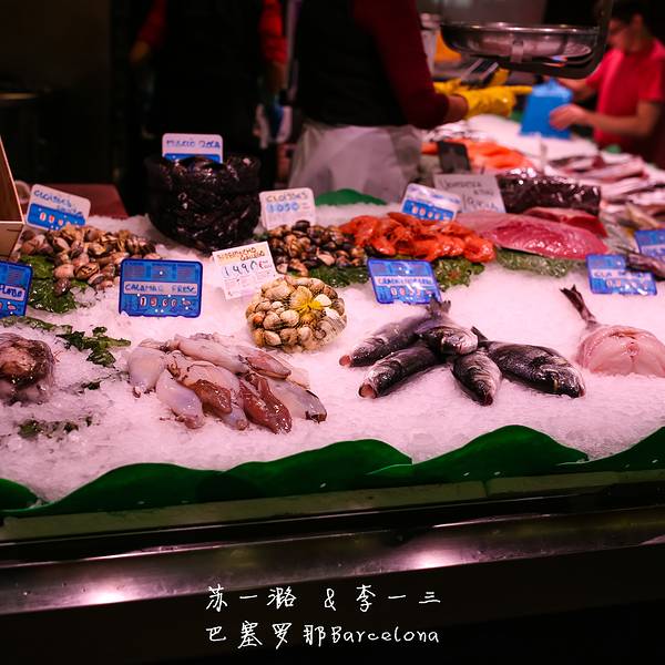 新鲜的海产品。这个菜市场由水产品、蔬菜水果、奶酪、火腿等,倒是挺丰富的。也有酒吧,可以来一杯