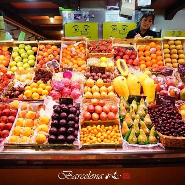西班牙最具艺术感的一个市场,也是巴塞罗那最后兴建的市场。堪称“阳光浪花下的奇珍美味”,如此浪漫的喻意,谁还会怀疑西班牙人的热情、浪漫和吃货的本质呢?市场里有各类新鲜的水果、鱼肉、干货等等。 路线:抵达巴塞罗那主教堂门口,右转穿过Via Laietana即是。 时间:周一7:30-14:00;周二、周三、周六7:30-15:30;周四和周五7:30-20:30。 在这里,琳琅满目的蔬菜和水果,看到你傻眼!