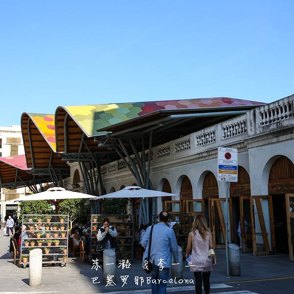 圣卡特纳市场Santa Caterina Market 圣卡特纳市场就是个有顶的菜市场,没有波盖利亚市场那么有名气,规模也不是很大。整个菜市场由钢条和木板组合而成,屋顶呈波浪状,从远处看还能看到屋顶上面的马赛克图案,这是在像高迪致敬。这个菜市场由水产品、蔬菜水果、奶酪、火腿等,倒是挺丰富的。 圣卡特纳市场实用信息: 地址:Avinguda de Francesc Cambó, 16, 08003 Barcelona 营业时间:周一7:30-14:00,周二、周三、周六7:30-15:30,周四、周五7:30-20:30 电话:+34-933-195740 波浪形的屋顶,木板和钢条构成。