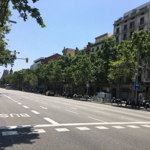 搭乘14、59、64、120路等到Portal de la Pau站下车。