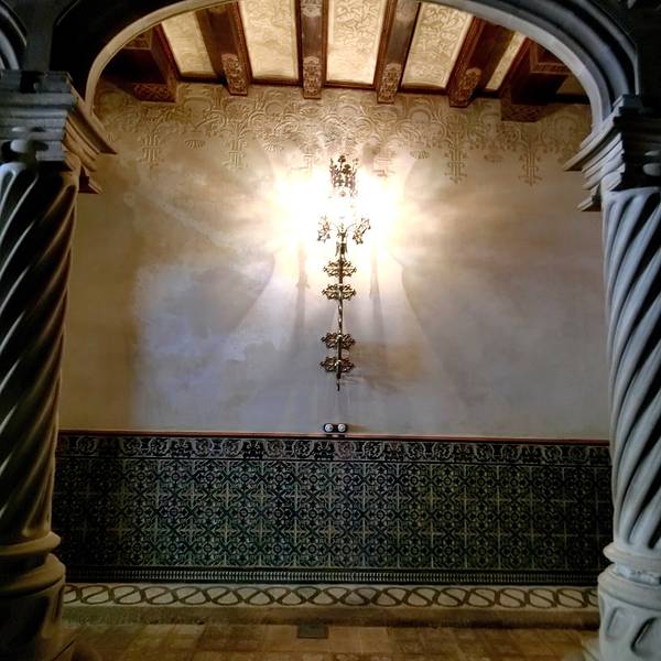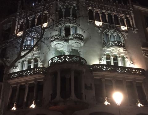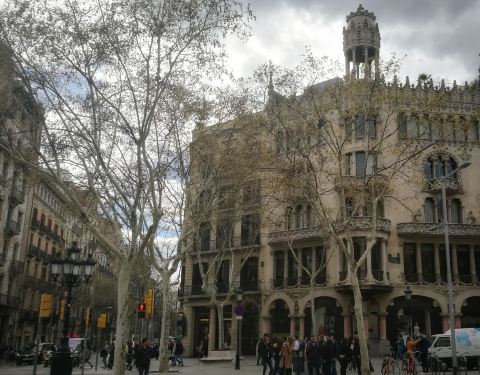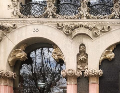 不过参观时限是半个小时,不能久留。参观完之后又饿了,不到饭点,只好再去吃tapas是一座由著名现代主义建筑师路易斯·多梅内克·蒙塔内尔设计的建筑,是巴塞罗那的不和谐街区的三座重要建筑之一。它始建于1864年,1902年改建。与当时许多建筑不同,它没有以业主命名,而是以装饰图案中的狮子(l...是一座由著名现代主义建筑师路易斯·多梅内克·蒙塔内尔设计的建筑,是巴塞罗那的不和谐街区的三座重要建筑之一。它始建于1864年,1902年改建。与当时许多建筑不同,它没有以业主命名,而是以装饰图案中的狮子(lleó)和桑树(morera)来命名。这是古巴-加泰罗尼亚摄影师Pau Audouard的住所。