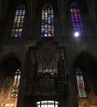 这一处修建于14世纪的加泰罗尼亚的教堂非常受欢迎,他采用了大量的彩色玻璃,特别是内部的穹顶和墙壁上的彩色玻璃,非常的漂亮。