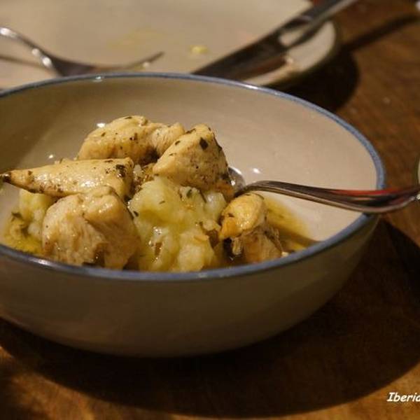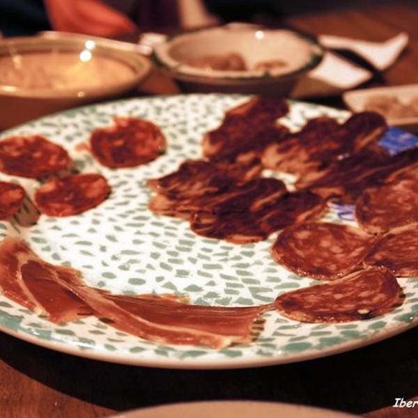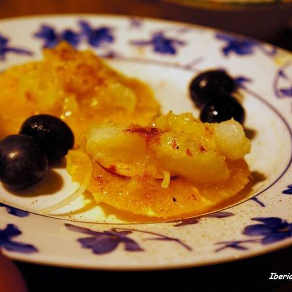 晚餐是早就预订好的,由于是年夜饭,我在Tripadvisor上找了一家评价最高的餐馆La Oliva。这家店位于新城广场附近一条窄巷内,非常难找。有客人自己开车过来,结果转了1个小时也找不到。在格拉纳达的老城区密布小巷,所以GPS基本上没用,定位很不准。 这家店的有趣之处在于,它在白天是一家土产店,而在晚上则是小餐馆,最多能放6桌12个人,而大厨的料理台就是一个小小的卡式炉而已。但是店主暨大厨Francisco将晚餐变成了一场非凡的安达卢西亚美食体验活动,每一道菜他都会讲解其做法,细道其来历。和一般的西餐不同,Francisco会上无数道菜,让我们体验各式各样的菜品。这一天在店中一共有三对顾客,除了我们之外,还有一对在西班牙工作的英国夫妇,一对在内华达山上度假的在法国工作的加拿大夫妇。另外还有一个日本人,是店主的朋友。