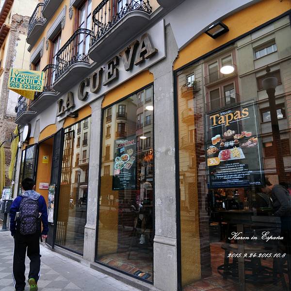 格拉纳达的老城很小,还没溜达几步就转一圈了。看离旅游局的开放时间还很早,于是决定先把肚子填饱。根据导游和LP的共同推荐,来到位于老城区街角的La Cueva de 1900餐厅。