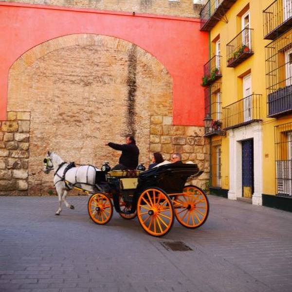 逛塞维利亚老城的,其中一个方式,是乘坐马车,在老城区乘坐嘚嘚的马车,特别有一种穿越回几百年的感觉逛塞维利亚老城的,其中一个方式,是乘坐马车,在老城区乘坐嘚嘚的马车,特别有一种穿越回几百年的感觉。拍到一张,马车停在墙角的图片,好像一张复古油画一样。