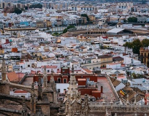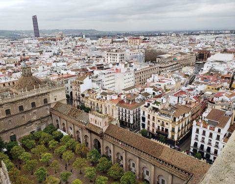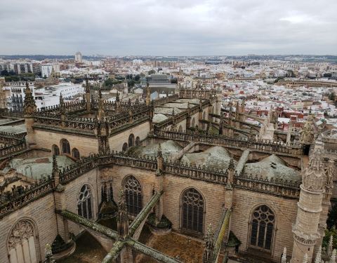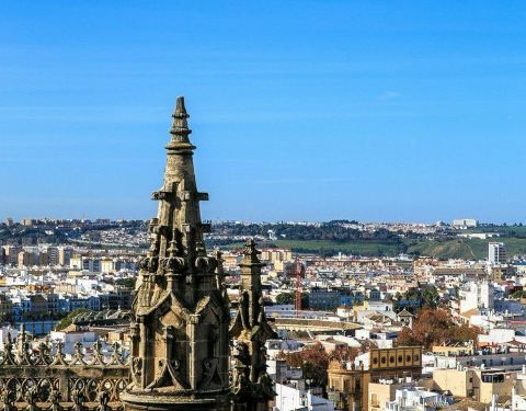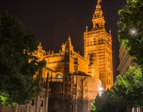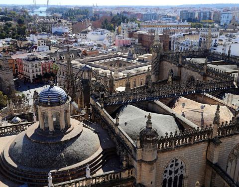 塞维利亚大教堂的壮观钟楼,登至塔顶可俯瞰市区美景。