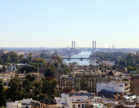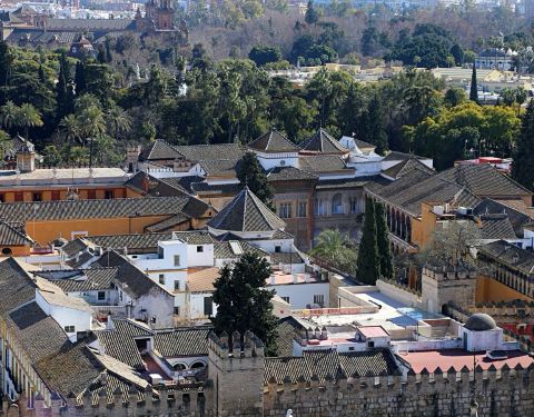 吉拉尔达塔是塞维利亚的地标,不论在城市的哪个位置都能看到这座98米左右高的建筑。此塔由伊斯兰教徒阿莫阿德家族于12世纪末主持修建,伊斯兰风格浓郁,从塔下仰视觉得塔尖很小,其实那是高4米,重1288公斤的青铜神像,据说在风中它还会来回转动,塔顶28个大钟至今仍能用优美的音色为塞维利亚居民报时。 若想眺望塞维利亚城市美景或确认一下准备游览景点的确切位置,登上70米高的瞭望台再合适不过。不过塔里是没有台阶的,只有一条据说是过去国王骑马绕行的坡道。教堂外还有百辆古式马车供游人租用。