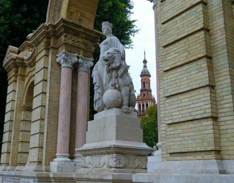 从塞维利亚大学过马路的时候其实就可以看到这个广场后面的公园 事实上这里已经和广场融为了一体 用...西班牙广场位于城市老城区东南角 从塞维利亚大学过马路的时候其实就可以看到这个广场后面的公园 事实上这里已经和广场融为了一体 用巨大的绿地给广场提供了一个缓冲 让周边没有什么高楼大厦遮挡或者破坏景观 里...西班牙广场位于城市老城区东南角 从塞维利亚大学过马路的时候其实就可以看到这个广场后面的公园 事实上这里已经和广场融为了一体 用巨大的绿地给广场提供了一个缓冲 让周边没有什么高楼大厦遮挡或者破坏景观 里面隐藏在大树下还点缀了一个小的咖啡店 楼下是小卖部 感觉还蛮有感觉的 阳光洒在一部分的建筑下 点一杯饮料看着广场主要的建筑 可以发呆一个下午 展开