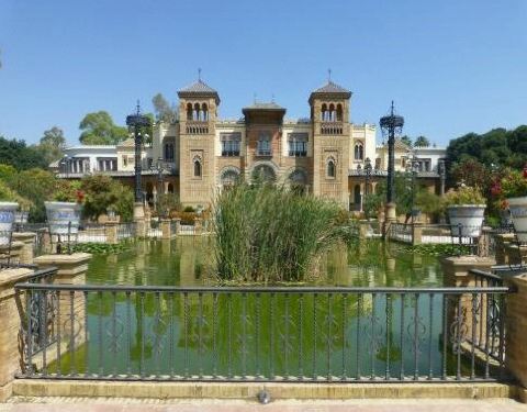 玛丽亚・路易莎公园是塞维利亚较大的公园,占地40多万平方米。它的前身是一座浪漫派风格的花园,由路易莎·德·奥尔良公主捐赠,1929年为拉丁美洲博览会而改建。 半圆形的西班牙广场位于广场东侧,用砖和陶瓷铺设,半圆形的水道将广场与周围环绕的建筑分隔开来,游人可以划船游玩。建筑物一侧的河边放置着供游人休息的座椅,上面描绘着西班牙各地的历史画面。广场旁设有军事博物馆。 公园的南端是为拉丁美洲博览会而兴建的三座建筑,分别代表着西班牙三种杰出的建筑风格:新歌特风格、穆德哈尔风格和银匠风格。现在分别是塞维利亚省立考古博物馆和民俗博物馆。考古博物馆展出史前时代和古罗马时代的文物,包括意大利古城遗址出土的文物。民俗博物馆则展出塞维利亚当地陶器、传统民族服装和古代农具、家具等。