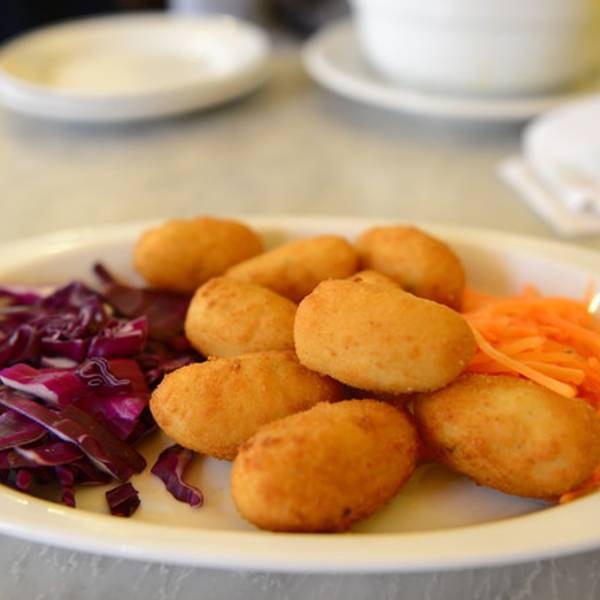 之后点的食物口味也不尽如人意,鳕鱼球显然不是整块鱼肉制成,而是打成鱼胶后加了面粉,口感粘腻,很失望