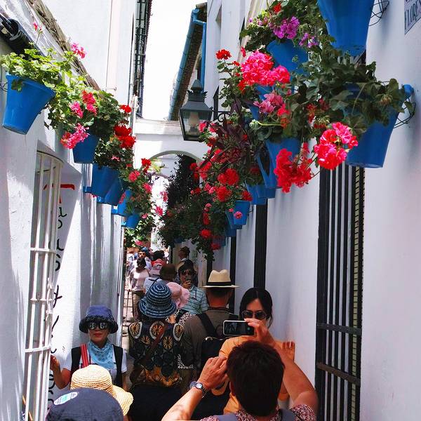1920年开业,1930年改名为现在的名称并营业至今,屡屡获奖的传统科尔多瓦菜餐馆。楼上有天台,但我们没上去,据说冬天会关闭。午饭共63欧,不记得有没有点酒了。这个炸茄子很好吃,甜甜的,比较符合江浙口味。甜品感觉一般般春天的科尔多瓦应该是最美的传说中的百花巷,就在大教堂旁边的一个弄堂里,如果不是很多游客在拍照,那其实就是一条很普通的小巷。下午6点多回到塞维利亚,直奔弗拉门戈博物馆,之前在网上预订的7点的演出