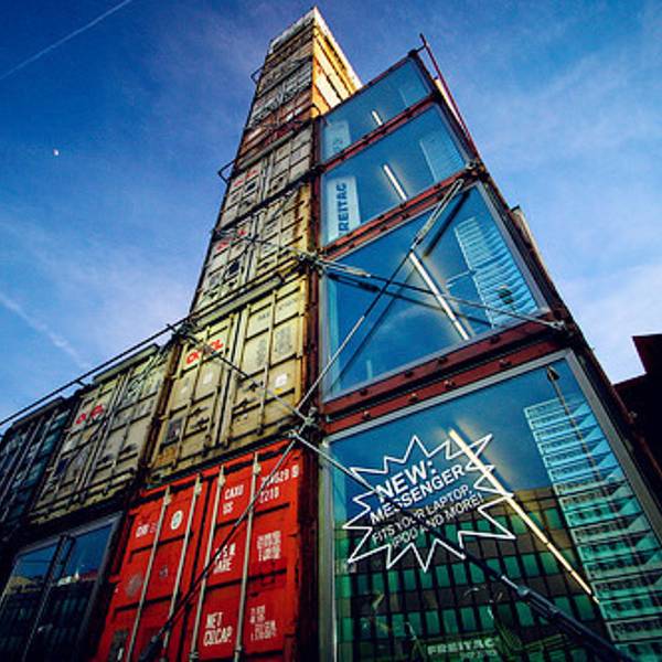 吃完就去著名的Freitag星期五包包店了,从HB乘坐近郊线路S5or6or7一站(还有别的线路也可达)到hardbrucke下车,沿着天桥往北走10分钟不到可达。Freitag包店由于其苏黎世总店造型的特殊性已经变成旅游景点了,很...