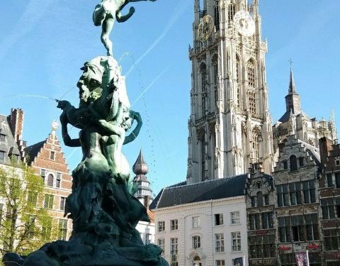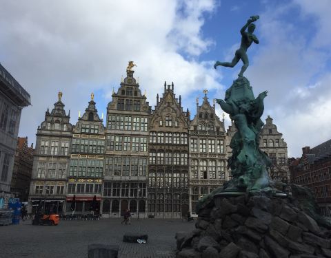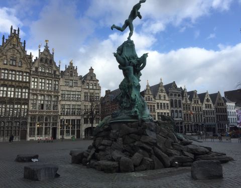 布拉博喷泉位于安特卫普市政厅的广场前面,个人感觉这个喷泉感觉还挺漂亮的,喷泉上是个雕像,感觉是个怪物,阴天会影响观赏效果。