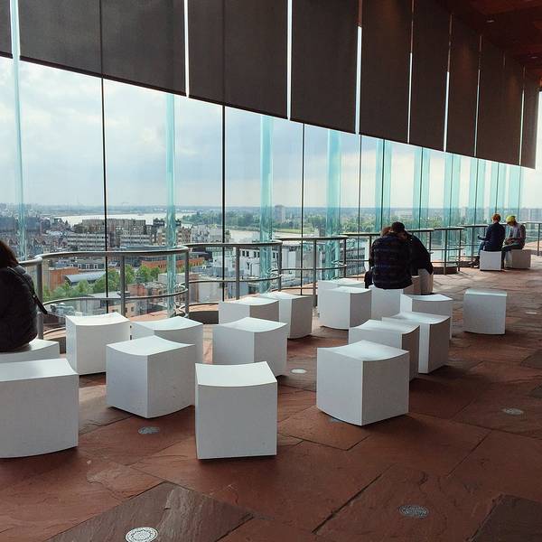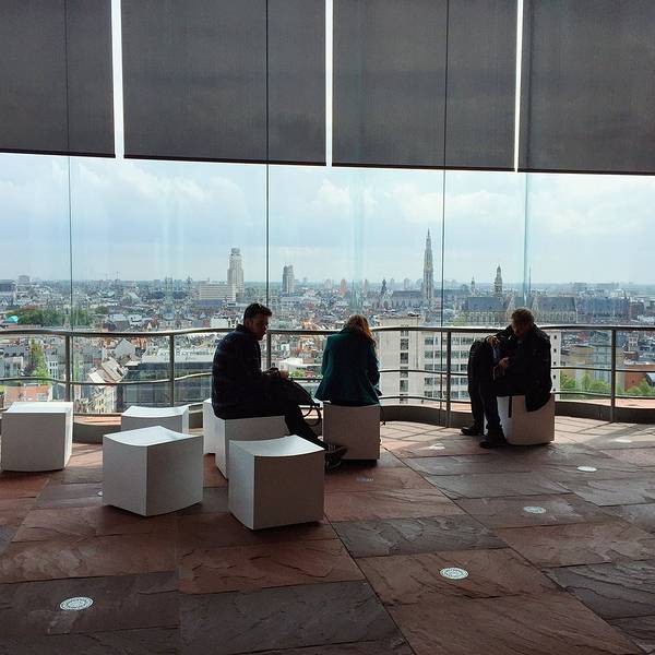 离开了市集广场,我们继续往背面走,就能走到安特卫普的一座新的制高点Museum aan de Stroom--河上的博物馆。这座博物馆有着奇特的外形,每一层楼交错上升。每层楼的展厅主题不同,不过从底部到顶部串联起了安特卫普几百年来的历史变迁。 楼顶的观景台视野特别棒,而且是免费的。