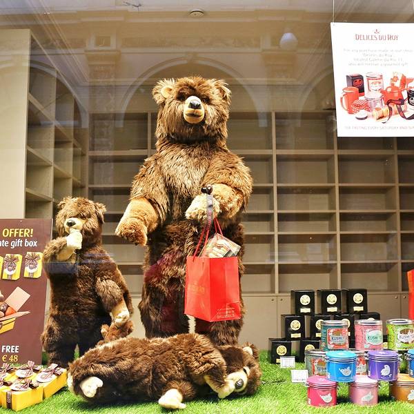 这条长廊有一些奢侈品品牌店,咖啡馆,以及比利时比较知名的巧克力店,无法想象巧克力还能做成这么多造型!