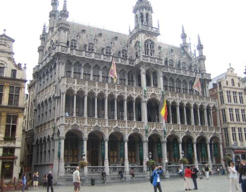 布鲁塞尔大广场边的建筑大都建于17世纪晚期,至今仍完好地保存着当年的风貌。1998年布鲁塞尔大广场列入世界文化遗产行列。 布鲁塞尔市政厅 大广场呈长方形,长110米,宽68米,地面全用花岗岩铺砌而成。广场四周很醒目的建筑是布鲁塞尔市政厅,它是布鲁塞尔典型的哥特式建筑,整个建筑建于三个不同时期,经一再扩建增修,才到目前的规模。带尖顶的钟楼高达96米,装饰有圣米歇尔斩杀恶魔的雕塑。 天鹅咖啡馆 市政厅左侧门上有个天鹅雕像的是天鹅咖啡馆。市政厅对面同样带有尖塔的大楼曾归西班牙国王所有,被称为“国王之家”,现为国家博物馆,各国送给撒尿小童雕像的衣服也被收藏在这里。 塞尔克拉斯雕像 位于布鲁塞尔大广场一隅的塞尔克拉斯雕像不容错过,这尊镀金铜像是为了纪念布鲁塞尔的英雄萨尔克拉斯而建的,表现了塞尔克拉斯临终前的场景,据说从左往右触摸雕像会带来好运。 各色建筑 环绕广场的其他建筑物多分属各种行会组织,如船夫、裁缝、粉刷匠等等,每个行会建筑的门上的雕塑是本行会的崇敬人物或象征性动物的雕塑。由于修建时期的不同,这些大厦体现出哥特式、巴洛克式、路易十四式等等多种多样的建筑风格。其中正面装饰有19尊历代布拉班特公爵半身雕像的布拉班特公爵大厦威严而壮观,这组由六座大厦组成的建筑群建于1698年,是磨房主、木匠等行会所在地,而现在这里已成为可可和巧克力博物馆。 绝妙夜景 除了欣赏精美大气的建筑外,布鲁塞尔大广场的夜景也是一大亮点,华灯初上时所有建筑上的壁画和雕刻都熠熠生辉,是拍摄夜景的好地方。 花地毯节 此外,从1971年开始,每隔两年,在8月15日前后的周末,布鲁塞尔广场都会有一项盛大的庆典:铺设花毯。花毯精选根特地区种植的秋海棠,每次以不同主题设计,花卉用量高达80万株。如果在碰巧遇上了,一定要好好欣赏花团锦簇的广场美景。