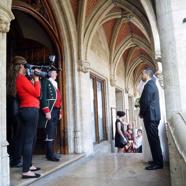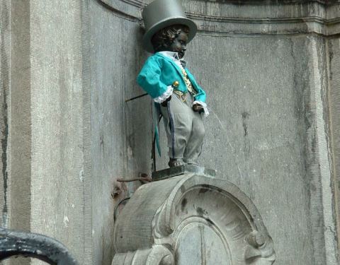 在布鲁塞尔大广场众多建筑物中,令人注目的是布鲁塞尔市政厅,这座歌德式建筑物是布鲁塞尔的城市地标。 历史背景 建筑物分两期建造,规模较大的左半部建于1402年,1455年建造右半部时,由PhilipeleBon主持建造了塔楼和96米高的尖塔。 塔尖有一座5米高的风向标,是布鲁塞尔守护神圣米歇尔的雕像。传说布鲁塞尔的领主曾因圣米歇尔相救而幸免于难,领主为此授予圣米歇尔布鲁塞尔守护神的称号。市政厅的走廊内布满了壁画。在众多的肖像画中有比利时的君主,有曾经统治过布鲁塞尔的西班牙、荷兰、法国等国的国王,还有拿破仑。