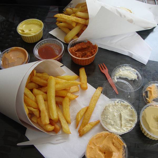 从1948年开始,老安托万和妻子正式在这里开店,现在已经是第三代人在经营了。“安托万之家”的薯条曾经登上过美国《纽约时报》,被称为是世界上最好吃的薯条。安托万之家每天临到中午开业时,门前经常已经有很多慕名而来的薯条拥趸。“安托万之家”制作薯条的工艺非常独特,先把土豆条炸制一遍,待到出售前,再回油锅高温加工,然后捞起撒上薄盐,这才大功告成。如果对原味薯条还不满意的话,这里也有20 多种蘸酱可以选择。薯条店旁边有一些酒吧,点上一杯比利时啤酒,配上最佳薯条,应该也不比炸鸡啤酒差多少吧!