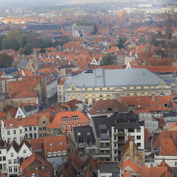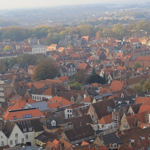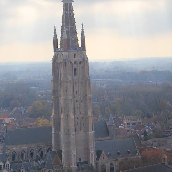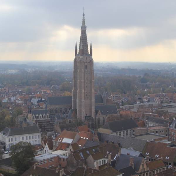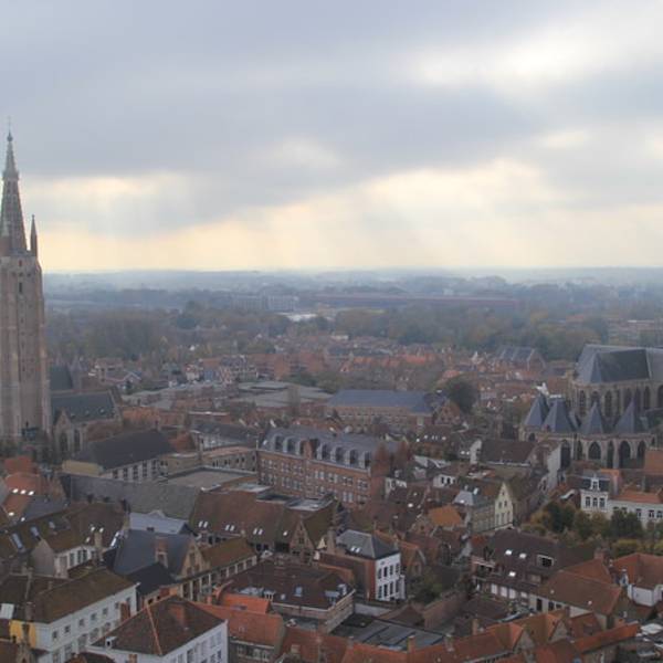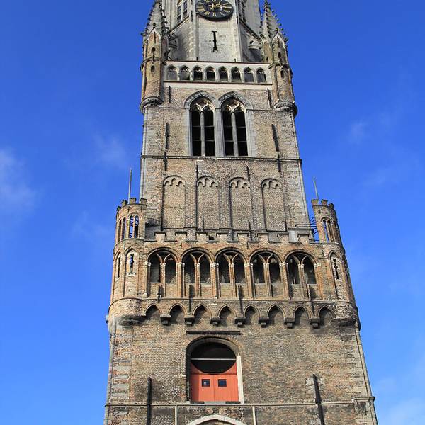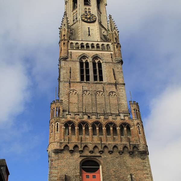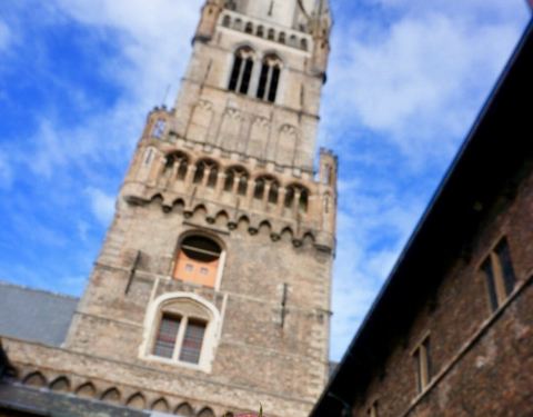 布鲁日钟楼过...布鲁日钟楼位于市集广场南侧,被誉为比利时最精美的建筑,建于13至15世纪,高83米,由47个钟组成的编钟,每15分钟响一次。据说,当年拿破仑兵临城下,这47座大钟同时响起,竟淹没了法军的隆隆炮声。