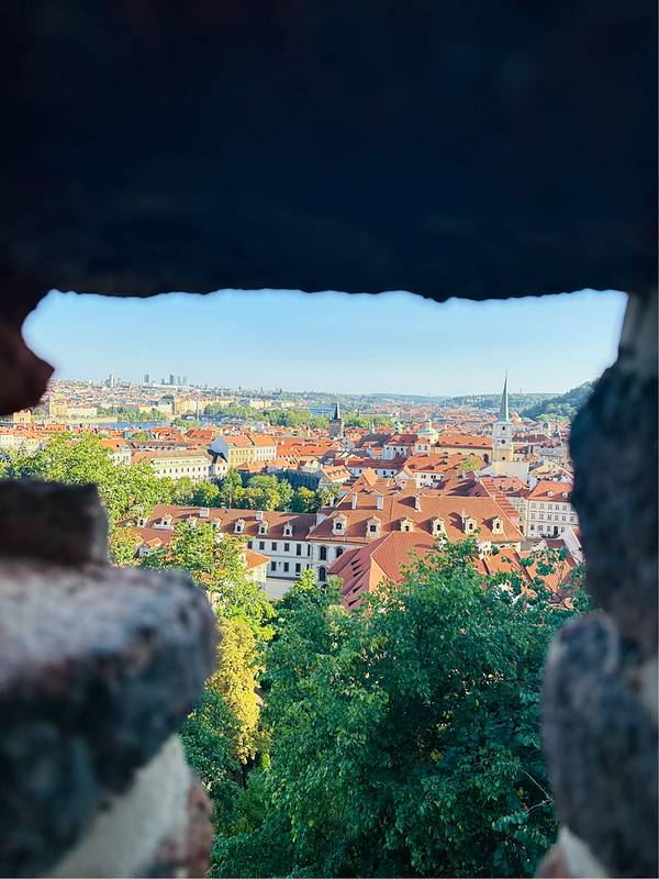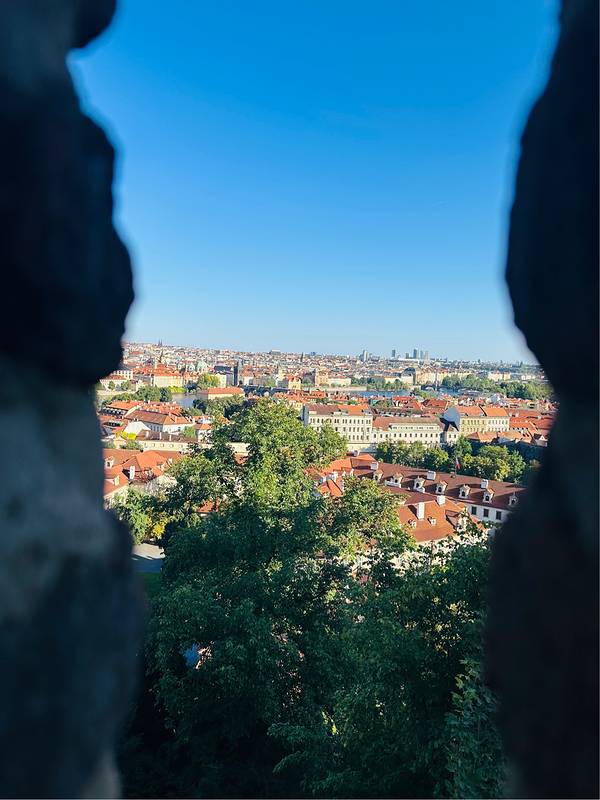 塔内楼梯就是盘旋而上的老式旋转石梯,工作人员👩💼说总共200多个台阶,预估爬塔会需要15~20分钟,所以游客还是要量力而行。还好我最近有锻炼,中间简单停顿休息两次,很快上到塔顶观景台。从塔顶环视布拉格市区风景真的很不错,能看到很多布拉格市区著名的景点和建筑,如果时间和体力充裕,到布拉格推荐爬塔游览一番。