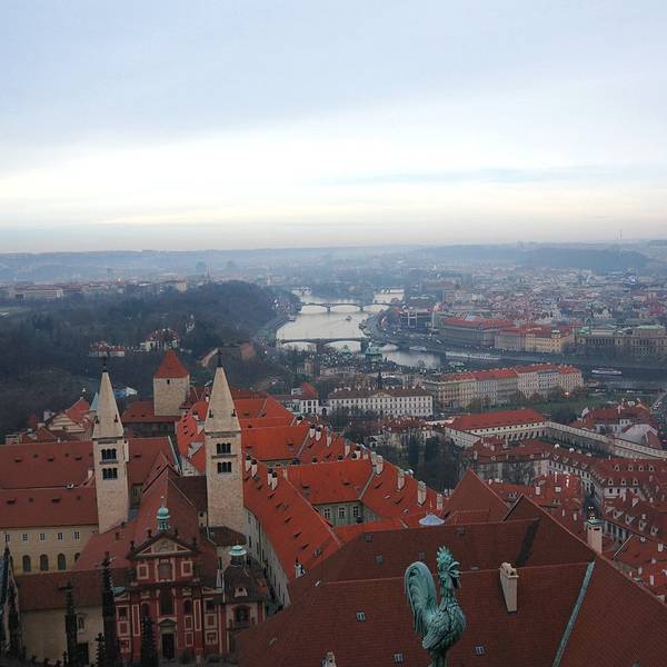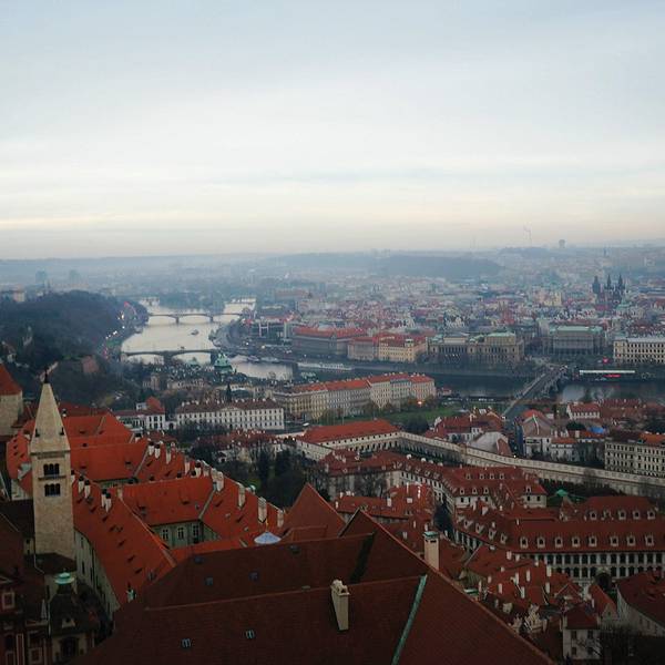 捷克人民的音乐品位是何其的好,那些日子无论是从广播里,在查理大桥上,还是在任何一家店里,都没有听到过糟糕的音乐。我们从城堡侧面进入,买了去塔顶的门票,顺着一道狭窄的旋转楼梯爬了十几分钟,爬得快断气...