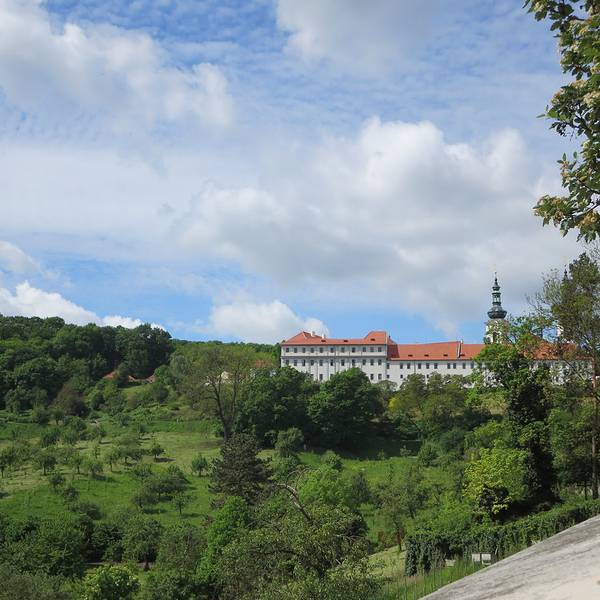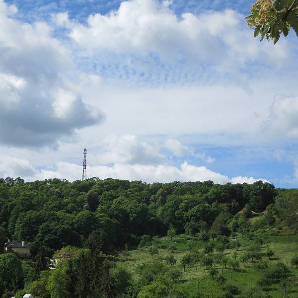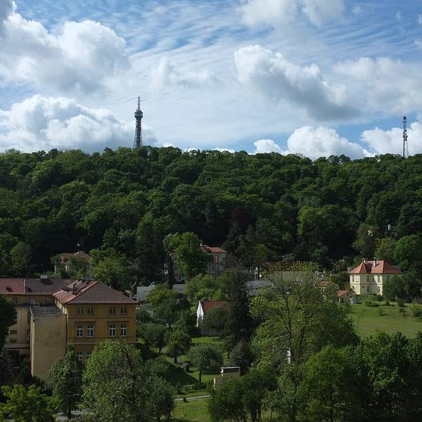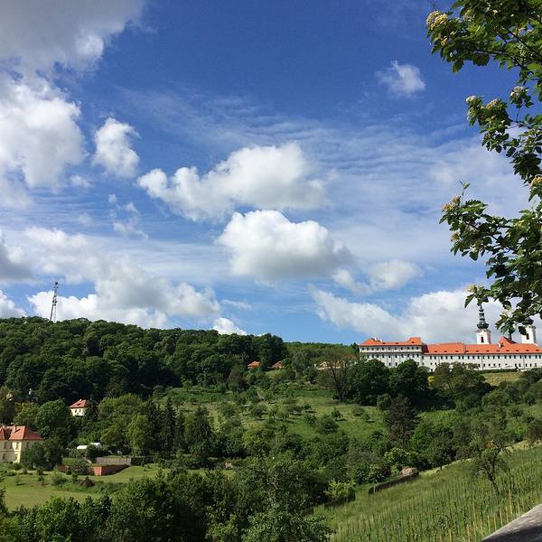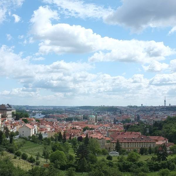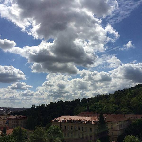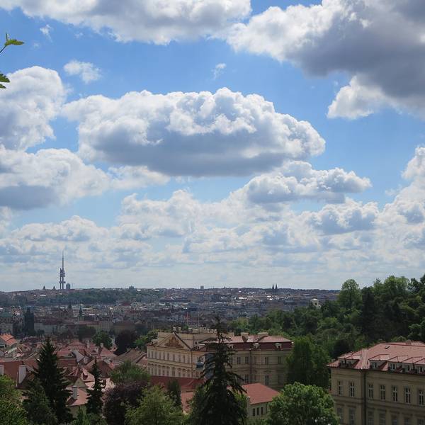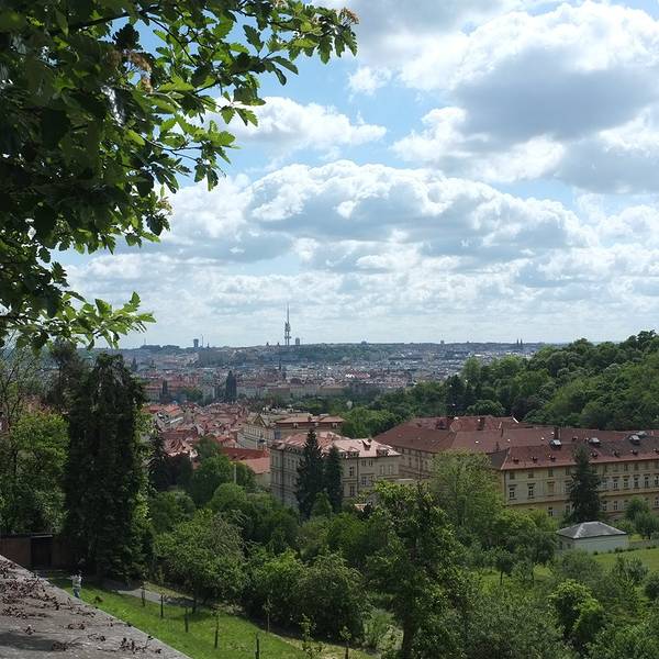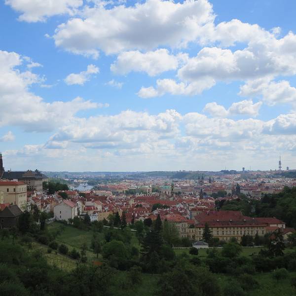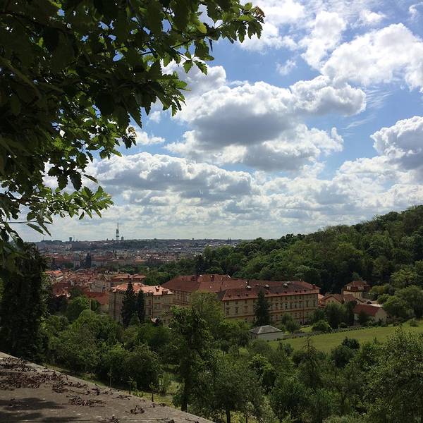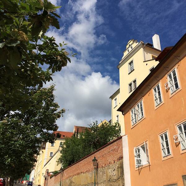 早上还是万里无云,现在已是白云朵朵出了教堂沿着Nerudova、Uvoz大街一路向西,这是一段向上爬坡的路,渐渐的一侧变成了围墙,原来我们已经爬的挺高的,可以看到远处城市的样子。早上还是万里无云,现在已是白云朵朵。
