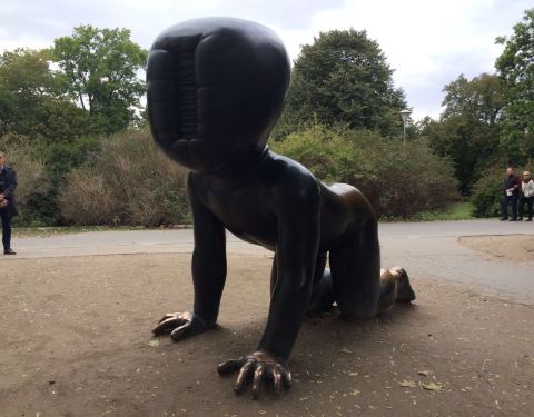 康帕博物馆就在河边,展出的一些雕塑蛮搞怪有趣的,草坪上有巨大的婴儿在爬着