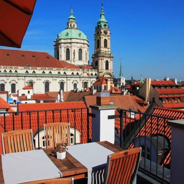 这家餐厅的地址是Trziste 9, Prague 118 00,开门时间是早上7点到晚上10点。它离老城广场特别近,坐落在ARIA HOTEL的顶楼。 他家主页是http://www.codarestaurant.cz/en/ 在coda餐厅的阳台上就能望见圣尼古拉斯...