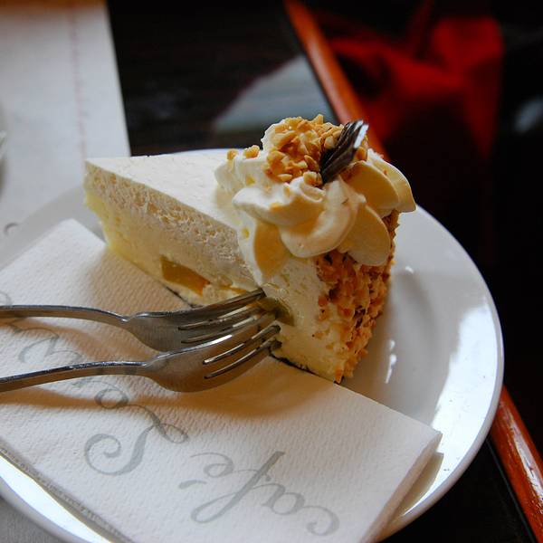 进入餐厅,自己找桌子坐下即可,服务生按区域负责餐桌,咖啡馆的楼道就是大理石结构,整个用餐区被鹅黄色的灯光和墙壁包围,氛围非常好 推荐两款HOME MADE蛋糕,第一是经典萨赫,蛋糕由两层甜巧克力和两层巧克力...进入餐厅,自己找桌子坐下即可,服务生按区域负责餐桌,咖啡馆的楼道就是大理石结构,整个用餐区被鹅黄色的灯光和墙壁包围,氛围非常好 推荐两款HOME MADE蛋糕,第一是经典萨赫,蛋糕由两层甜巧克力和两层巧克力中间的杏子酱构成,甜酸可口,喜欢甜腻的感觉的话,奶油搭配是最好的选择,第二是芝士蛋糕,厚厚的芝士包裹着黄桃,奶油上洒满松果,分量超足的一款甜品,与咖啡一起是绝配 因为餐厅人流很多,有游客也有当地人,所以翻台很快,服务生也是很效率的工作,如果没有预约的话,等位也不会很慢