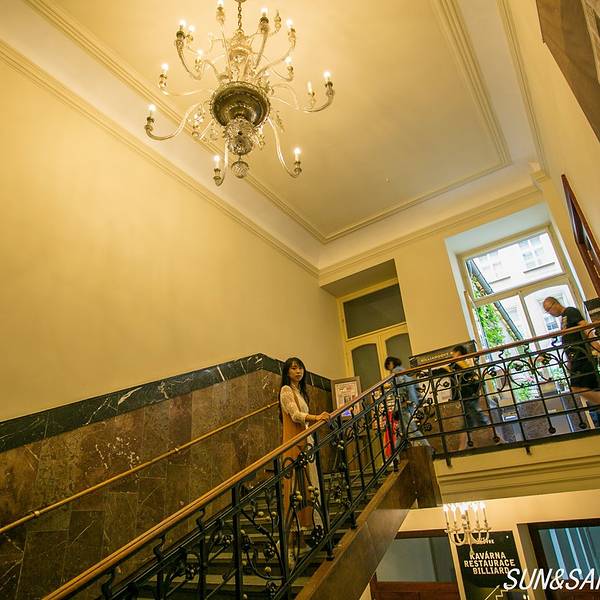 布拉格最具盛名的咖啡店,有100多年的历史。这是一间充满了巴黎情调的咖啡餐厅,走上灯光昏黄的楼梯,就能感受到浓郁的巴黎情调。装饰风格充满了马卡龙般的甜美,那是巴洛克式的轻柔温软。