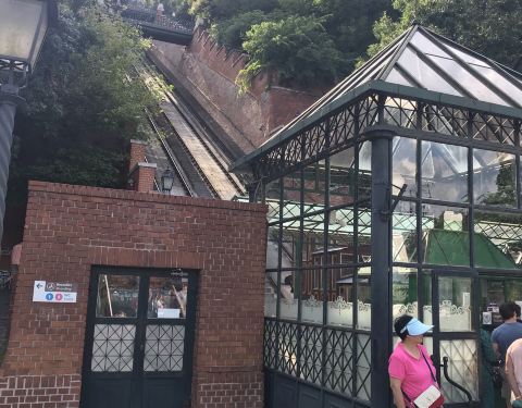 城堡山下,在这里可以坐16路(冒失是这个号)去市中心和上山,可以坐缆车上山 现在缆车单程票价为1100 往返是1700