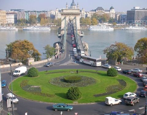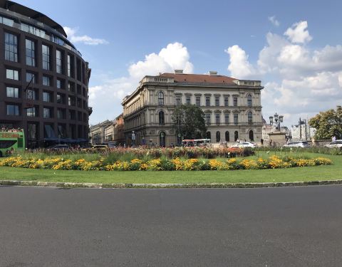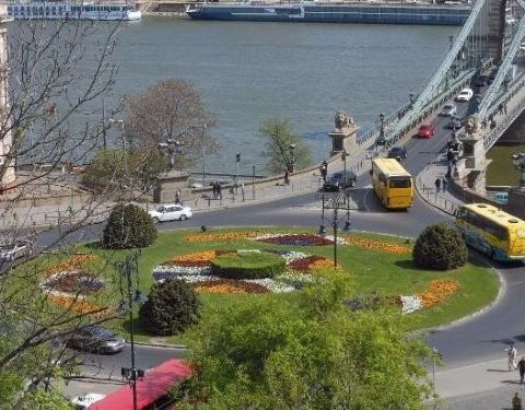 克拉克亚当广场位于布达佩斯的多瑙河畔,其正对着链子桥,其实广场里面就是一个花坛,这里构成了一个环岛,是公交车的必经枢纽之一。