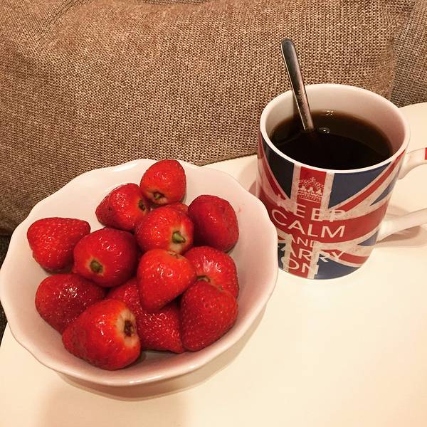 草莓是昨天买的,咖啡是家里的,还有一大袋即食的玉米片,也是在厨房发现的,真棒,完全不需要出门吃早餐,晚上记得买点牛奶回来就好,可以加在咖啡里还能泡玉米片吃...早晨,睡到自然醒来,给自己准备了一份早餐。