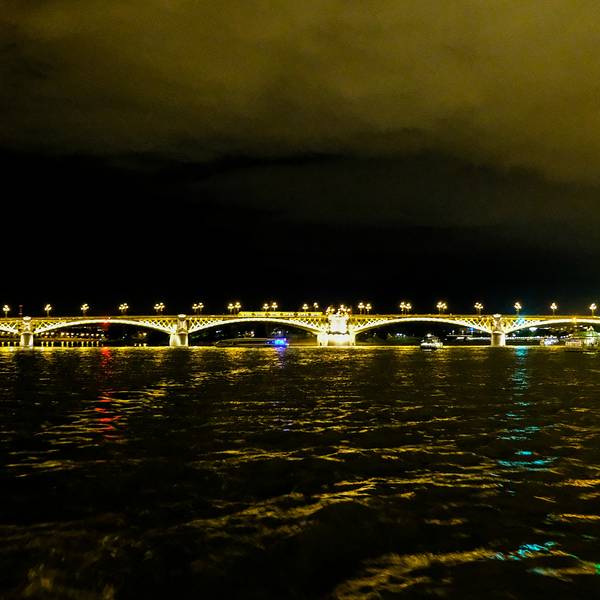 夜幕时分,河流两岸灯火辉煌,桥梁上车水马龙,伴着迷人的灯火,整条河流也被照耀的熠熠生辉,乘坐游船,身临其境地感受多瑙河畔两岸的风光,时间仿佛定格在那美好的夜晚。