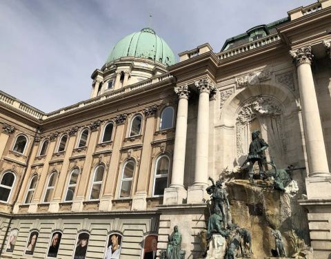 布达城堡雄踞城堡山之上,是布达佩斯的地标性建筑之一,曾是匈牙利王室的居室所在,目前皇宫中心部分已改为布达佩斯历史博物馆、国家图书馆和国家画廊。1987年被列入联合国教科文组织世界遗产。 历史背景 布达城堡始建于1242年,位于多瑙河西岸,匈牙利国王为了抵御鞑靼人入侵而建。后因战争易主被改建成清真寺,曾一度毁于火灾,1930年重修后又遭到了二战的浩劫,可谓命途多舛,现在我们能看到的皇宫是其于1950年在战后修复的样子。 建筑风格 建筑风格兼具了巴洛克风格和哥特式风格的混搭型宫殿,气势恢宏,正立面由希腊式的柯林斯式圆柱支撑,外墙红白相间,立面顶部巴洛克式的绿色圆顶颇为瞩目。 参观导览 前往布达城堡参观可以在链子桥乘坐缆车,乘坐时还可以欣赏一路上迷人的风景。 布达城堡的入口处摆放着匈牙利神话中图鲁尔鸟(Turul Bird)的雕像,是1896年为纪念匈牙利人迁居此地1000周年而雕塑的。传说当年的匈牙利人来到这里,就是“图鲁尔”在前面飞翔带路的。雄鹰展翅高飞,双脚抓着一把剑叫"阿提拉之剑",有征服世界的神力。 皇宫前的马蒂亚斯喷泉也十分引人瞩目,喷泉基座的雕像表现了国王率众人狩猎的场景,雕刻十分精美,栩栩如生,吸引了无数游人驻足观赏。与喷泉毗邻的是有名的驯马人雕像,曾在1900年巴黎世博会展出,而喷泉一侧的观景露台上放有欧根亲王的骑马雕像。 布达城堡内的正殿现为国家画廊,展出了极富有历史代表意义的匈牙利画作、包括中世纪和文艺复兴时期的石雕,哥特式木雕、祭坛等艺术品等。位于偏殿的布达佩斯历史博物馆展出了考古发掘中出土的悉数文物和布达城堡中保存下来的珍品,较古老的藏品可以追溯到4万年前,来此,除了可以一睹皇宫内部的真容外,你还可以了解千年前布达佩斯人的生活。另外,历史博物馆门前的“战争与和平”青铜雕像也很值得一看。与布达佩斯历史博物馆毗邻的是国家图书馆,这里经常有临时展览以供参观,你可以看到千年前的古董书、地图、瓷器、民间艺术品等。 参观结束后可以去布达城堡正门前的观景露台一看,这里是眺望匈牙利国会大厦、链子桥和多瑙河美景的好地方,夕阳西下,华灯初上时的景致更是不容错过。