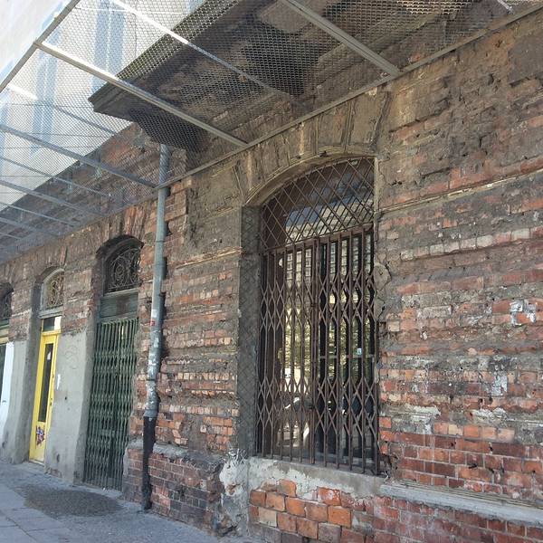 从Plac Grzybowski广场出发,弯弯曲曲,需要看地图才能找到的街道。这里保留了二战的遗迹,断裂的建筑被炸毁的楼,现在用幕布画着本来的窗子或者阳台,与残留下来的部分组合看仍然可以看出整个楼的面貌,细细看看大楼的残存的大门,当年这里曾居住着众多的犹太人