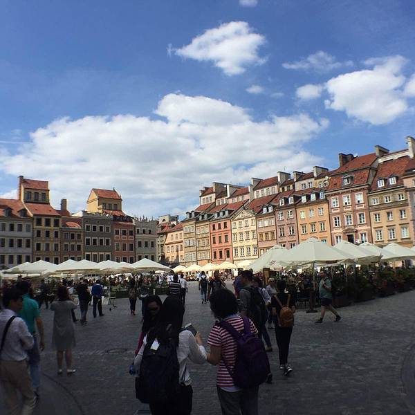 伴着波兰湛蓝的天空走进充满...美丽而充满生机的古城广场,无疑是华沙市区内最为色彩斑斓,最令人难以忘怀的迷人景致。在这座面积不算太大的广场内,却汇集了无数宏伟的教堂,精美的楼宇,以及众多令人难忘的建筑。