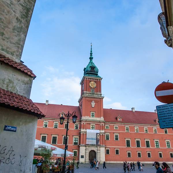 伴着波兰湛蓝的天空走进充满欢声笑语的波兰古城广场,首先映入眼帘的便是巨大的王宫城堡,它红色的外观虽然朴实,却在周围形态各异的建筑承托下,显得格外沉稳而厚重。
