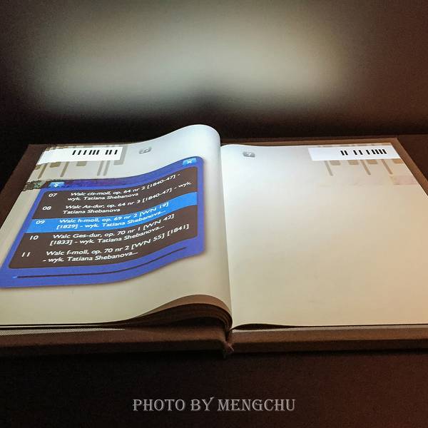 里面有展厅播放箫邦钢琴大赛的精华片段,也有播放区播放波兰舞曲,练习曲,夜曲等作品全是关于箫邦, 介绍他的生平,不同时期有何作品和他在欧洲游历的经过。 里面有展厅播放箫邦钢琴大赛的精华片段,也有播放区播放波兰舞曲,练习曲,夜曲等作品。 展馆非常时尚,有大量互动的演示。