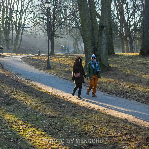 冬天的肖邦公园一片萧瑟,尽管有着参天的古树,有着温暖的阳光,有着三三两两散步和遛狗的人,但是依旧无法掩饰掉光了落叶的树杈,有着一种忧桑的凄美。
