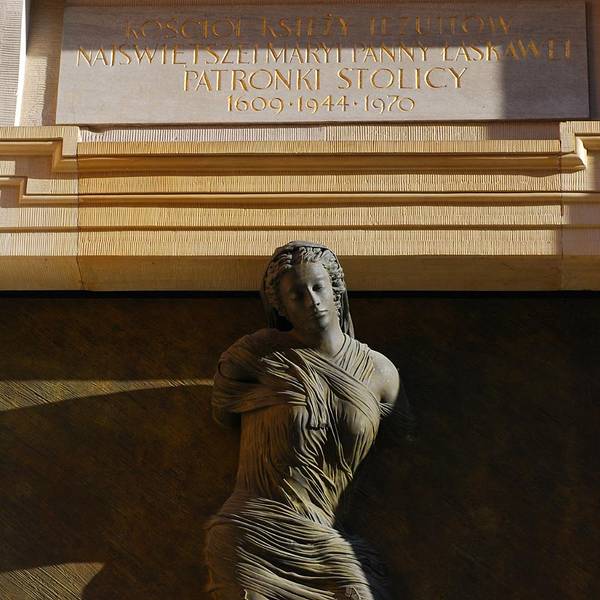 格雷斯圣殿教堂(Shrine of Our Lady of Grace Patron of Warsaw)和圣约翰教堂(Cathedral of St. John)紧紧相依,却是两种截然不同的建筑风格,——圣约翰教堂是一座典型的哥特式教堂,高高耸立的暗红色尖顶格外引人注目;而一墙之隔的格雷斯圣殿教堂却是文艺复兴晚期的杰作,整体风格低调许多,但是教堂的大门却让人惊艳,由著名雕塑家Igor Mitoraj所设计的“天使之门”雕刻得惟肖惟妙,栩栩如生。