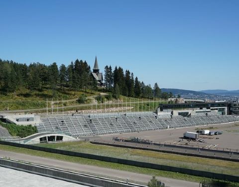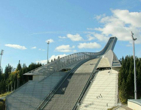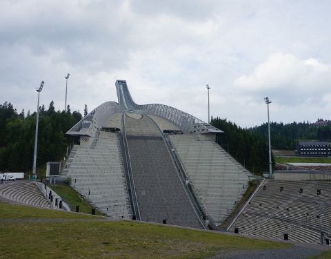 霍尔门考伦滑雪跳台是挪威冬奥会的重要比赛场馆,这个滑雪跳台的高度非常之高霍尔门考伦滑雪跳台是挪威冬奥会的重要比赛场馆,这个滑雪跳台的高度非常之高。整个跳台的坡度非常的陡,而且垂直高度也是很高,真的佩服那些滑雪运动员敢从上一跃而下,做各种高难度的滑雪动作。
