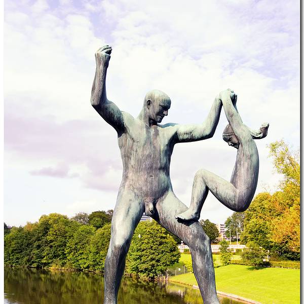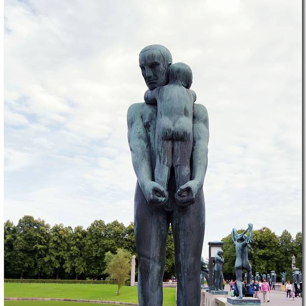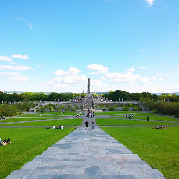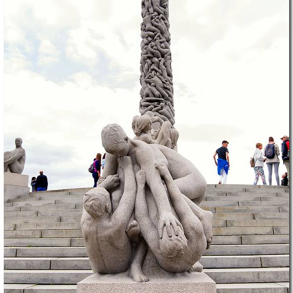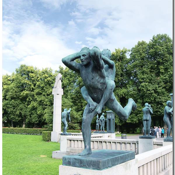 维格兰雕塑公园正是以挪威著名雕塑大师古斯塔夫·维格兰的名字命名,公园有 192 座雕塑,总计有 650个人物雕像。这些由铜、铁和花岗石制成的雕像,是维格兰 20 多年心血的结晶。一个人拿生命中最重要的20年去做一件事,是多么令人敬仰,多么崇高的事啊!公园里所有雕像的中心思想,集中突出一个主题——人的生与死。在这些雕塑中又以“愤怒的小孩”(一尊嚎啕大哭的小男孩雕像,只见他跺着双脚,挥动着胳膊,仿佛寻求父母之爱),和“生命之柱”最有名。