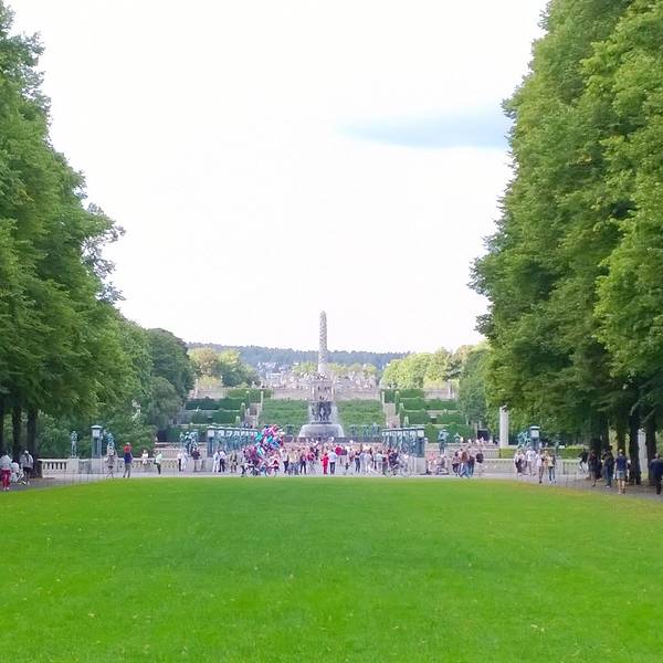 这就是整个公园里最有名的雕塑了。走到公园的最里面,海拔越来越高,但是视野却很好。进入雕塑公园!哇塞知道男小白最喜欢有水有绿色的地方,于是这次行程也包含了奥斯陆最有名的公园——维格兰雕塑公园。坐小蓝电车来到了公园门口,看到了想时代广场一样的街景~